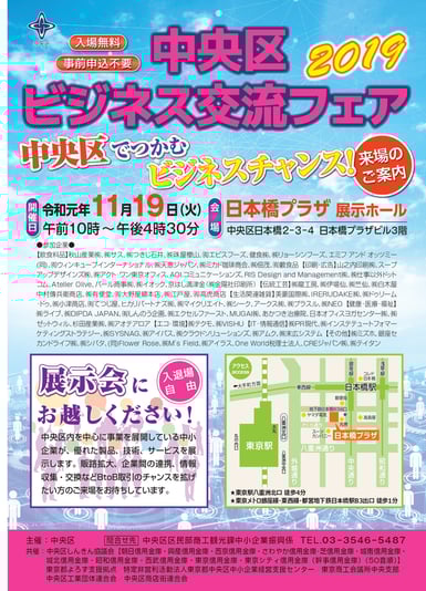 2019年11月19日(火曜日)日本橋プラザ 展示ホールにて中央区ビジネス交流フェアが開催されます。